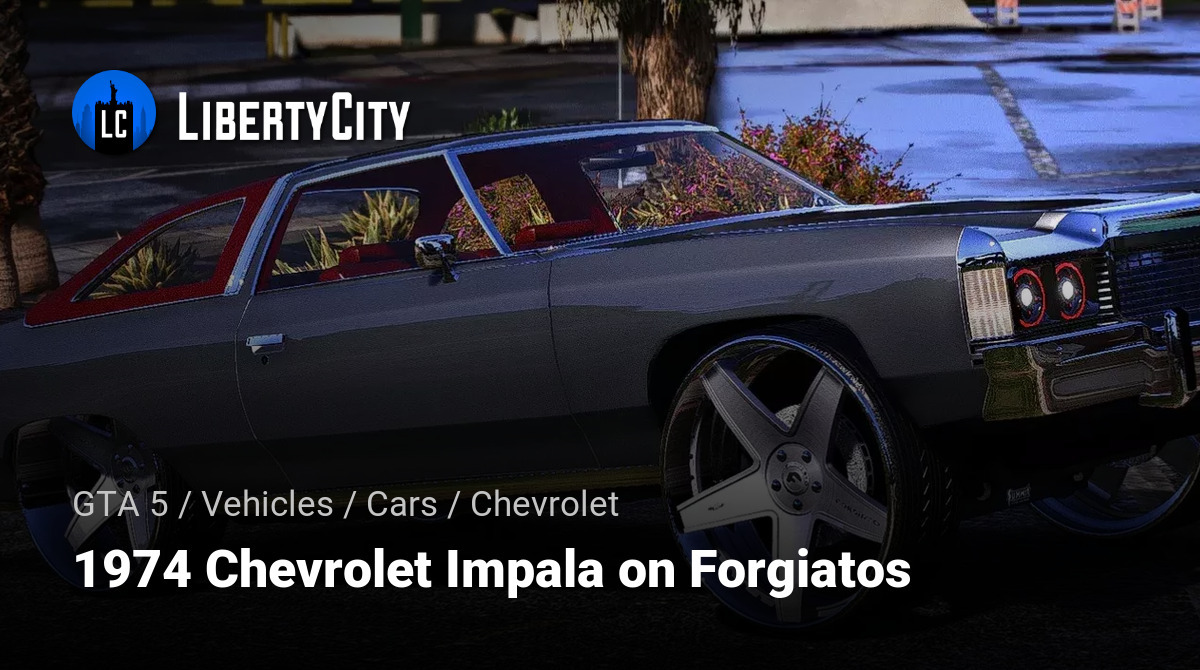 The rear of the body features smooth lines and massive shapes characteristic of the 1974 Impala. The chrome rear bumper matches the front and completes the classic look. Large, horizontally arranged taillights emphasize the width of the car and make the model easily recognizable. A burgundy insert on the rear pillar visually connects the side and rear sections, creating a cohesive and harmonious appearance.