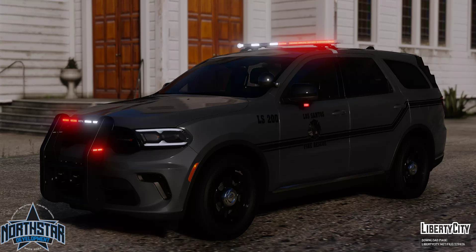 The body is painted in gray with minimalist black accents and "LAS SANTOS FIRE RESCUE" service livery.