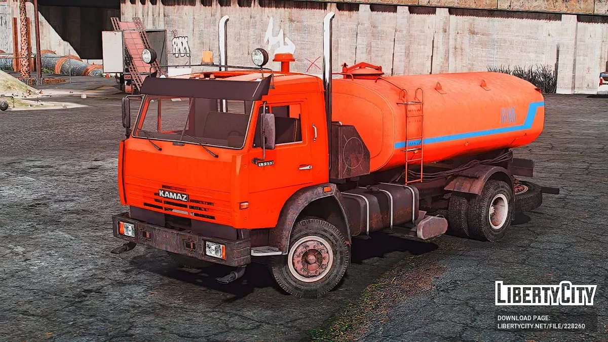 Watering KAMAZ 43253 for GTA 5. The body and interior of the model are well detailed. The car fits perfectly into the game! Features: Good body; Fully working optics; Hands on the steering wheel; Active dashboard; Realistic damage system...