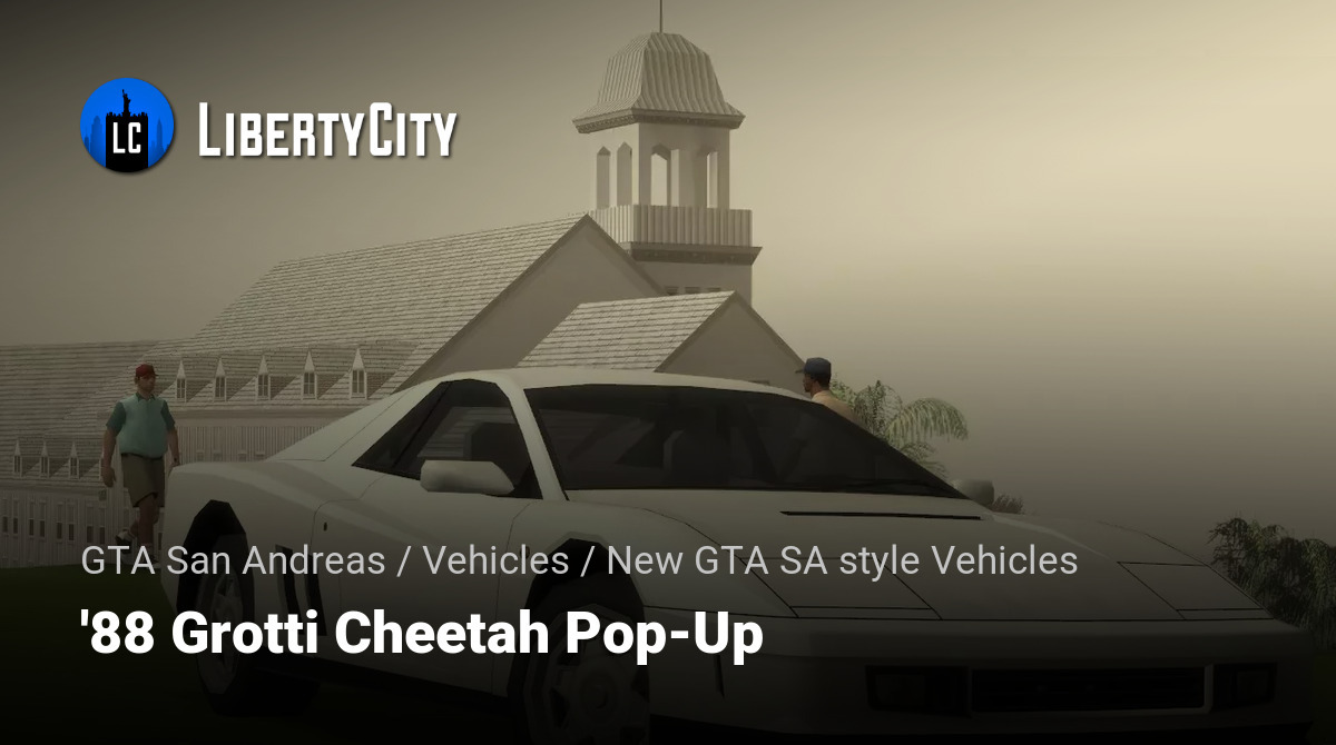 This is a lore-friendly sports car created in the spirit of the game's original vehicles. The model is inspired by the legendary Italian supercars of the late 1980s, primarily the Ferrari Testarossa (1988). The car fits organically into the atmosphere of San Andreas, combining the classic design of the era with the recognizable style of the Grotti brand.