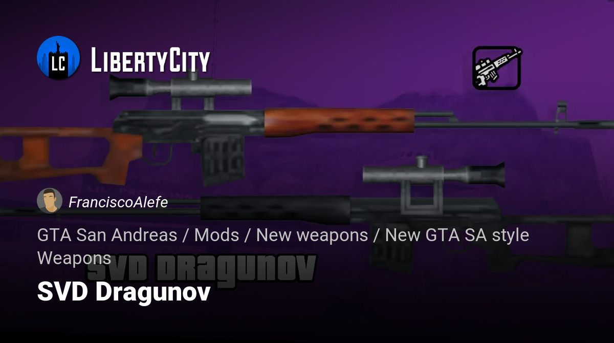 As I promised, I made the SVD - our domestic sniper rifle from the times of the USSR. -Normal, not blurry textures -New icon in SA-style -Icon for GTA IV Hud -Feels good in the hands -New high-quality sight -Realistic settings -And, of course, repla...