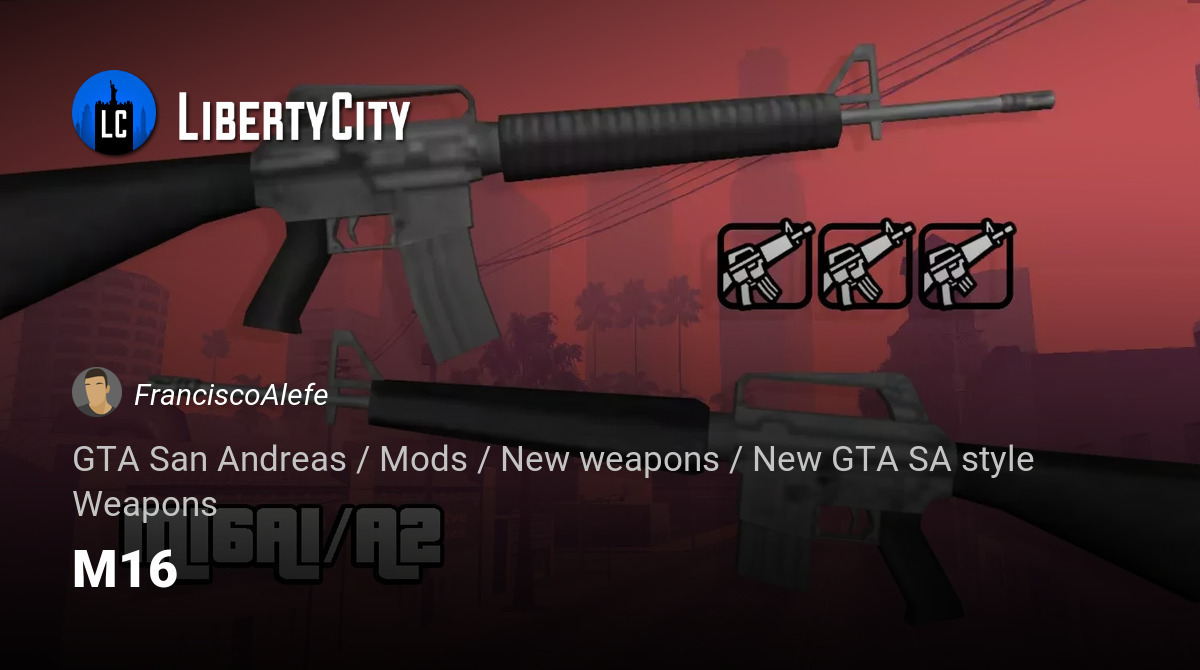 A mod friendly to the lore of the original game, the M16, cut from GTA San Andreas and only found in cutscenes, is now used for normal mode as well. While many people put the weapon textures from Manhunt 2, this mod has a slightly darker and bolder ...