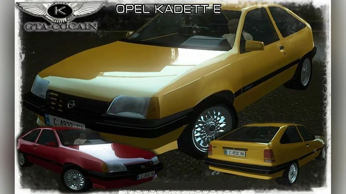 Opel Kadett E for GTA San Andreas. Features: - Damages; - MQ exterior; - MQ interior; - Model optimized; - SA optics; - Excellent shadow; - Collision fixed; - Paintable; - Scale corrected; - Works in SAMP, MTA. Enjoy the game!