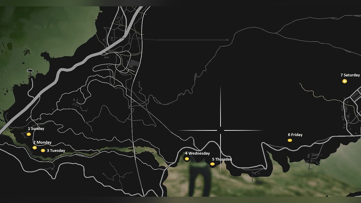 Moreover, as seen on the map, you have to collect the cacti not only at a certain time of day but also on specific days of the week, starting from SUNDAY.