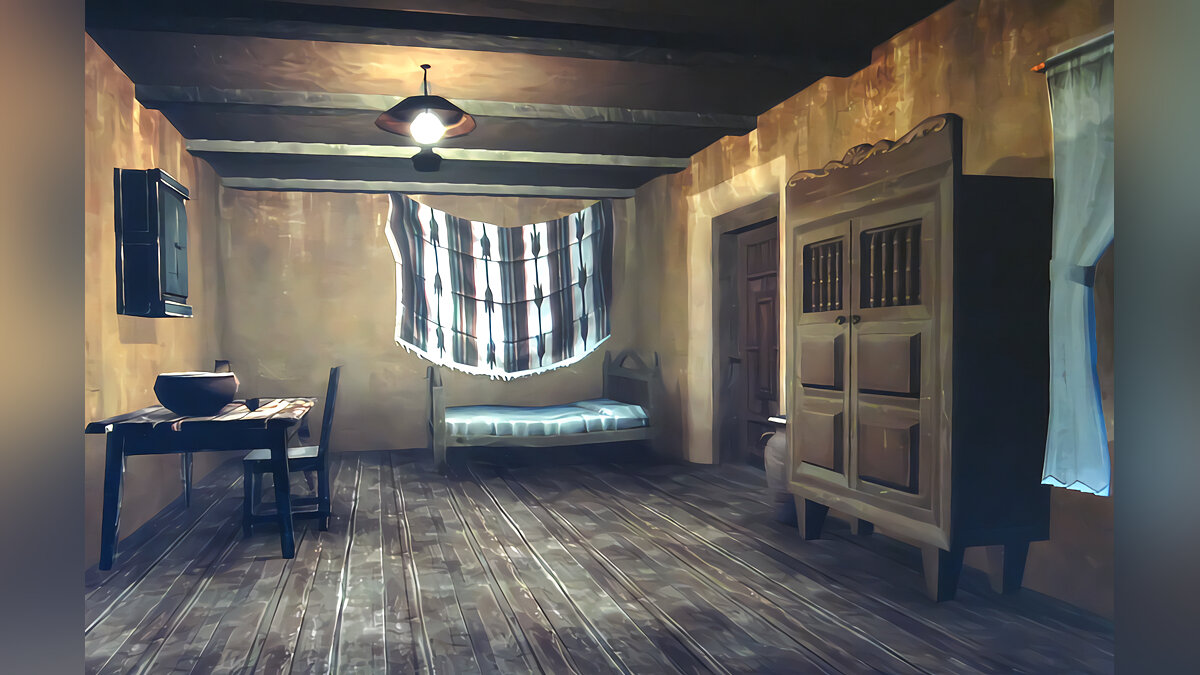 The room is located behind the saloon and offers the player a cozy space to rest. Inside, you will find a bed where you can recover your strength, as well as a chest with ammunition to replenish supplies. Additionally, there is a small amount of money stored in the wardrobe, providing an extra incentive to visit this hideout.