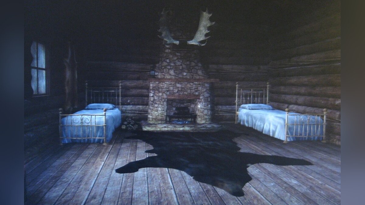 The cabin is located in the western part of Blackwater. It is a necessary component for achieving 100% game completion. This facility has two beds, a chest, a fireplace, a pair of snowshoes, a moose antler plate, and a bear skin rug.