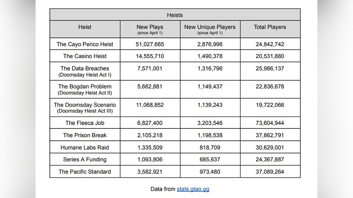 As you can see in the screenshot below, the Cayo Perico Heist is the most popular this year. It is quite likely that even the recent reduction in payouts for participating in this event will not affect the number of players.
