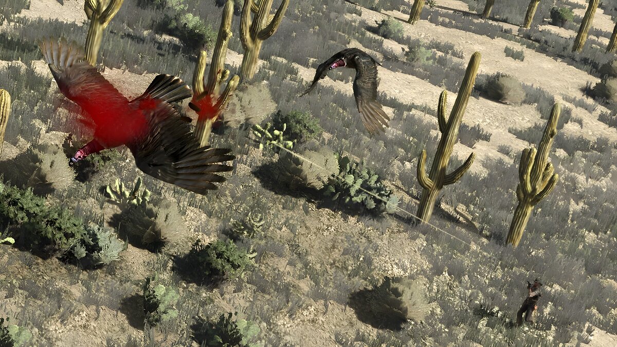 Flocks of birds are excellent hunting targets, including both random gatherings and vultures aimlessly circling over places where bandits hide. Packs of wolves and coyotes, which often cross your path, are also suitable targets. However, be cautious: entering and exiting the Dead Eye mode automatically reloads your weapon. This means the kill will not be counted for this task.