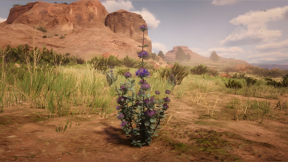 Desert sage is one of the most common plants found in the Cholla Springs, Rio Bravo, and Diez Coronas regions. If you plan to search for it, we highly recommend heading towards the Gaptooth Ridge plains, where this plant grows abundantly. With the survival map, you can quickly navigate and find places where desert sage grows.