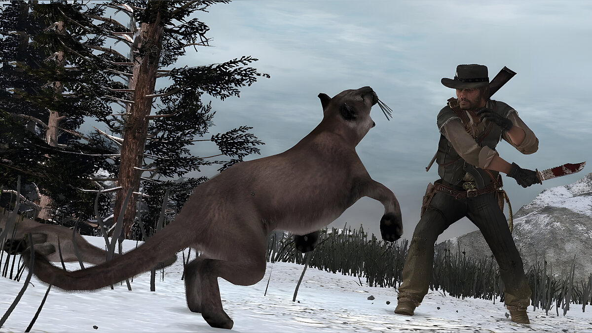 To weaken a grizzly, you need to make two headshots and six leg shots with a Cattleman revolver. After weakening the animal, throw a lasso on it. When you release it, the bear will run away — this will give you the opportunity to strike it with a knife without being attacked.