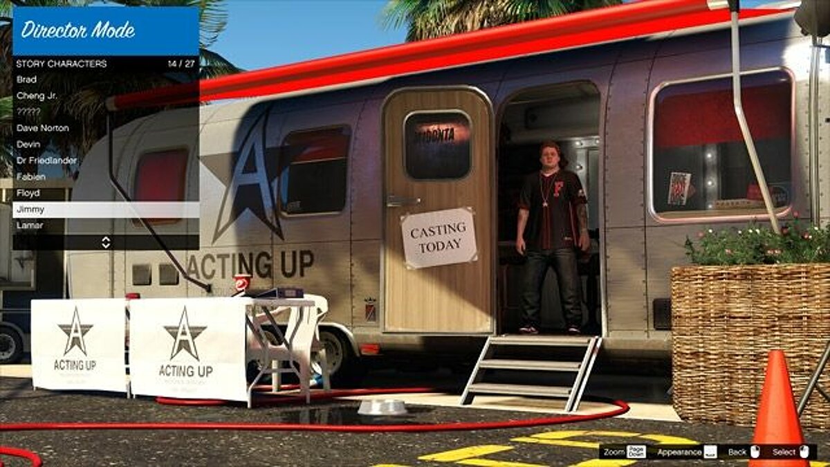 - Use the function list by pressing the Tab key to add up to 10 characters to the list. They will be available in the director's menu. This way, you can instantly change characters without needing to return to the player selection page. However, they cannot be changed during recording and when they are controlling a vehicle.