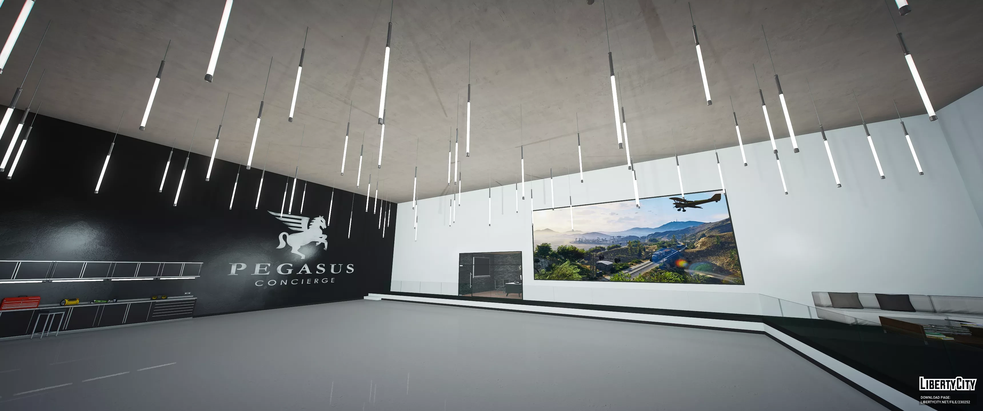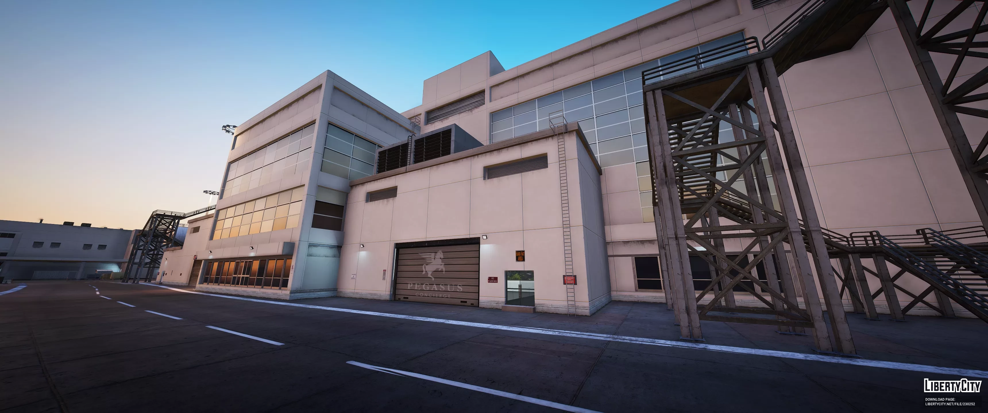 Airport Pegasus LSIA for GTA 5 The building is designed in a modern industrial style, featuring light gray and white tones. Its facade is made up of ...