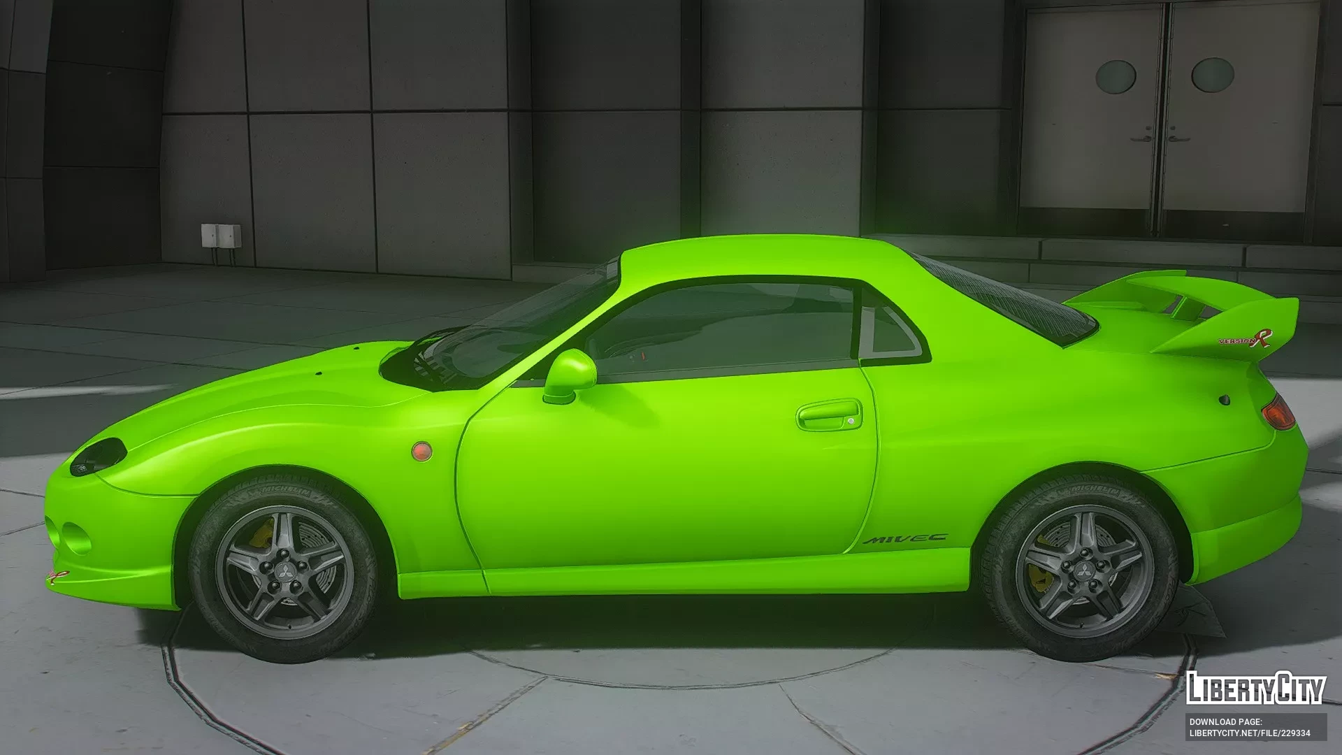 Mitsubishi FTO for GTA 5. Front: The hood with smooth ribs and the signature Mitsubishi logo emphasizes the sporty character of the coupe. Oval h...